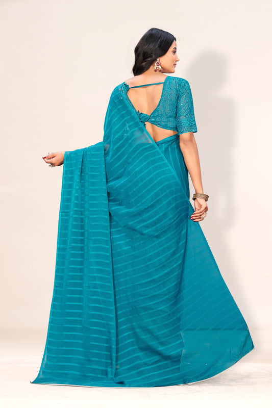 Omega Chiffon Saree with Tone to Tone Matching. *