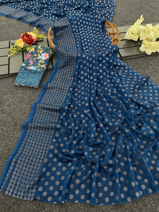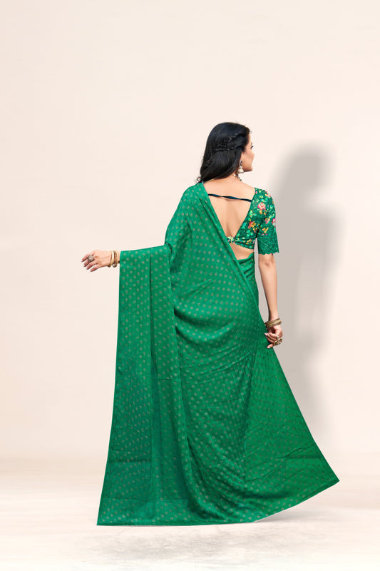 Lado Silver Digital Moss Saree with Digital Printed Blouse and Best Selling Saree Design.