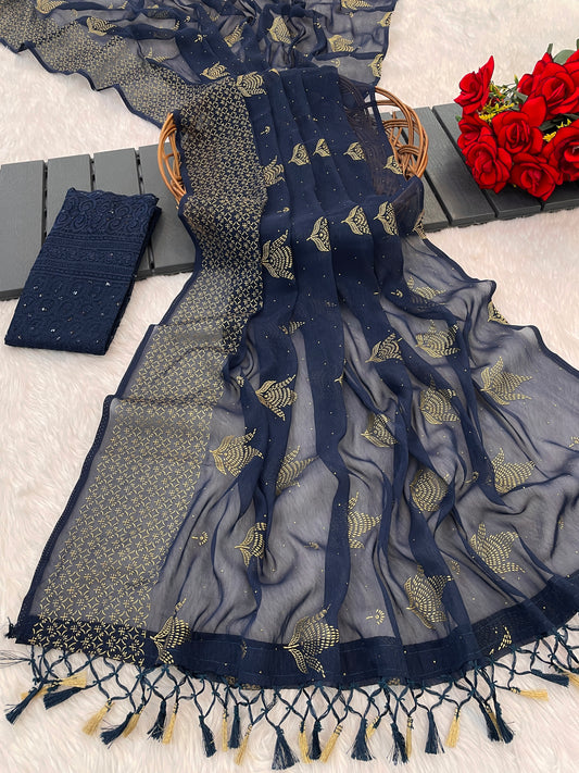 Celestial Shine Saree in Soft Chiffon Fabric β Illuminate Your Style!(Solo Dark Digital.)