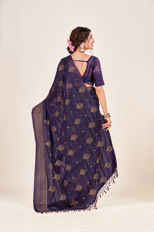 Celestial Shine Saree in Soft Chiffon Fabric β Illuminate Your Style!(Solo Dark Digital.)