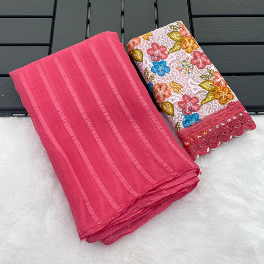 Block Deal 4 Fancy Fabric Saree with Tone to Tone Matching (8 Colours Available).