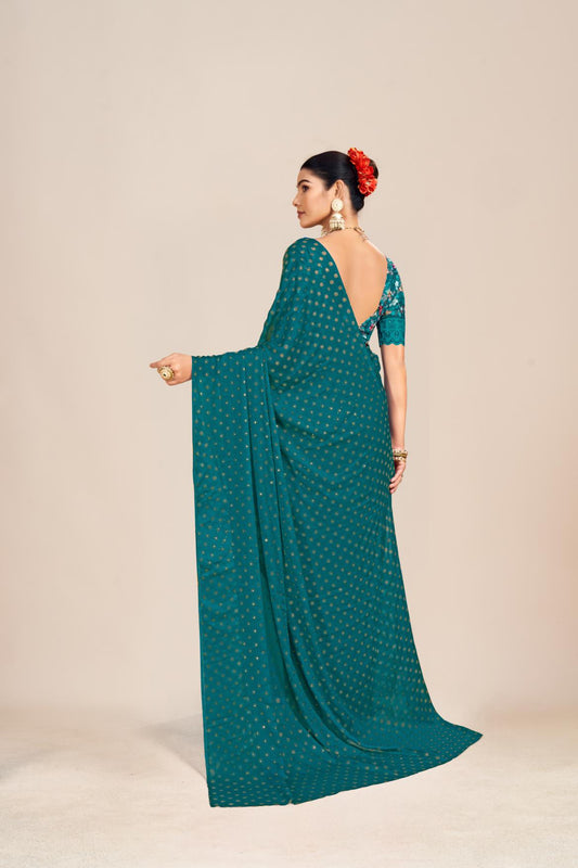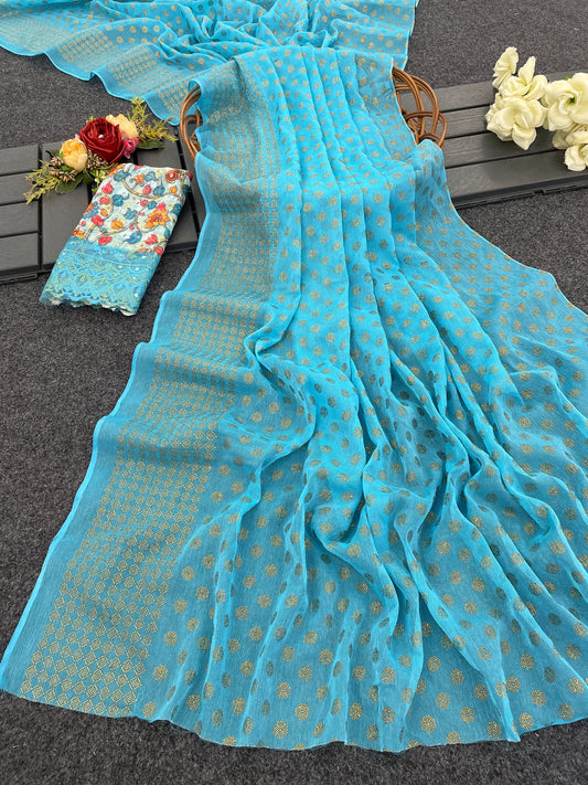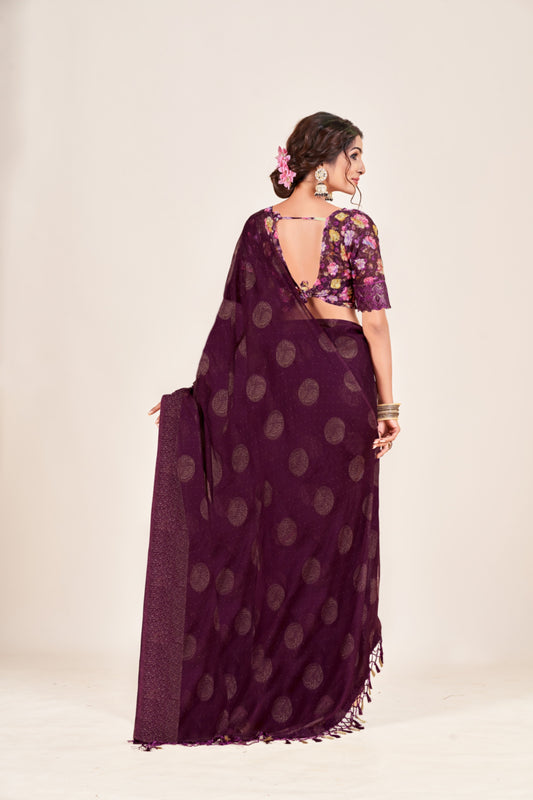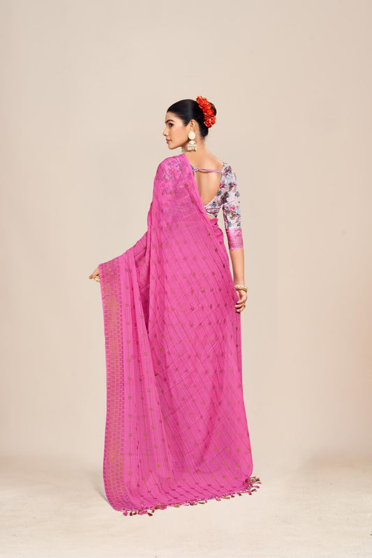 Omega Chiffon Saree with Tone to Tone Matching.**