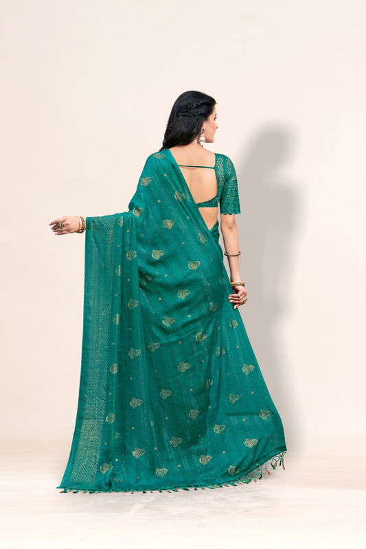 Swikar Multicolor Saree with Silver Foil Printing and Fancy Fabric (8 Colours Available).
