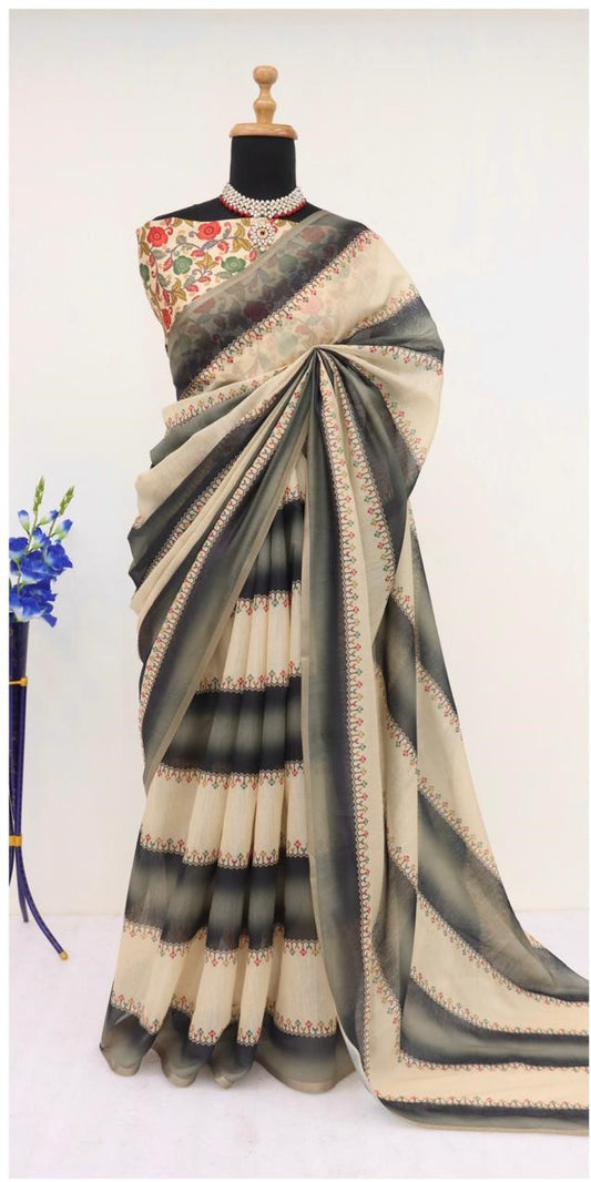 Lado Light Moss Saree with Digital Printed Blouse and Best Selling Saree Design