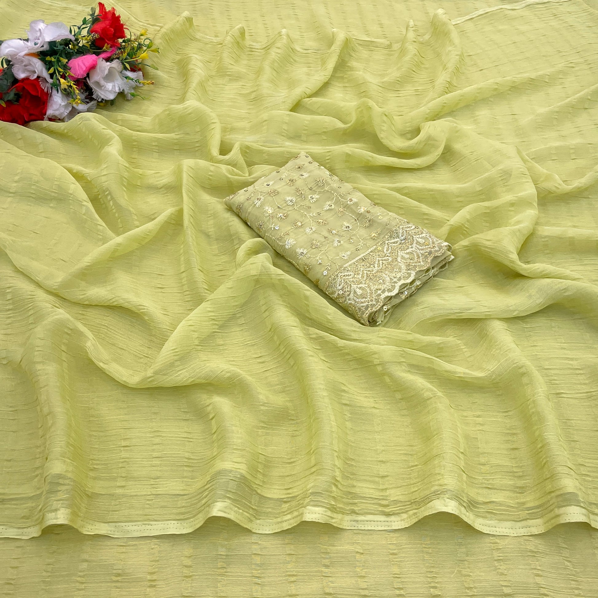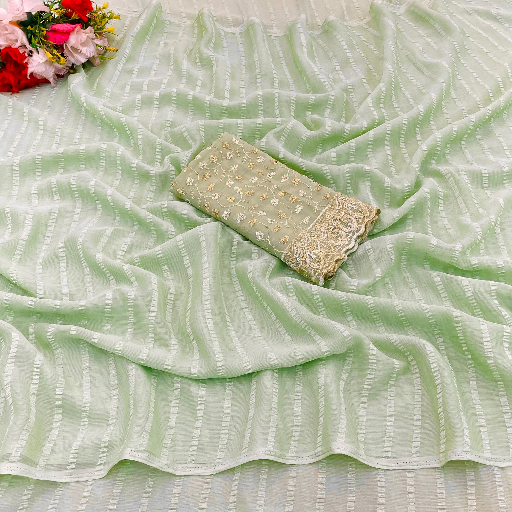 Luminous Saree in Tone-to-Tone Chiffon Fabric – Solo Pattern Elegance.(Solo Pattern Tone to Tone Digital.)