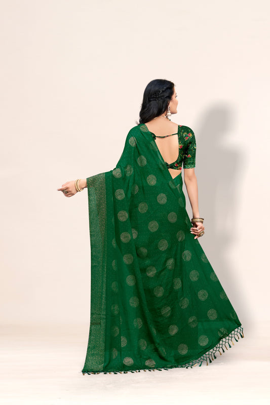 Lado Digital Gold Moss Saree with Digital Printed Blouse and Best Selling Saree Design *