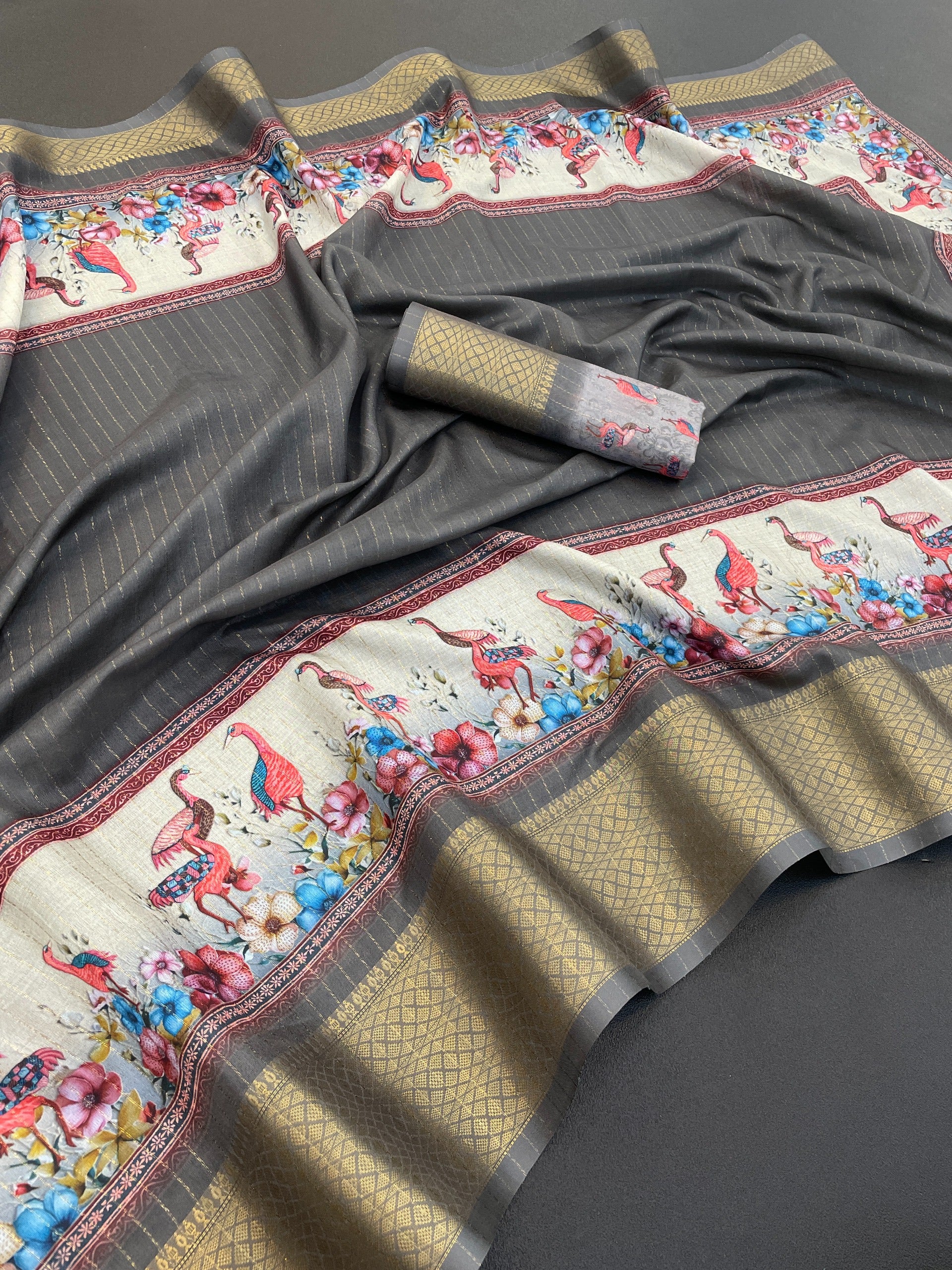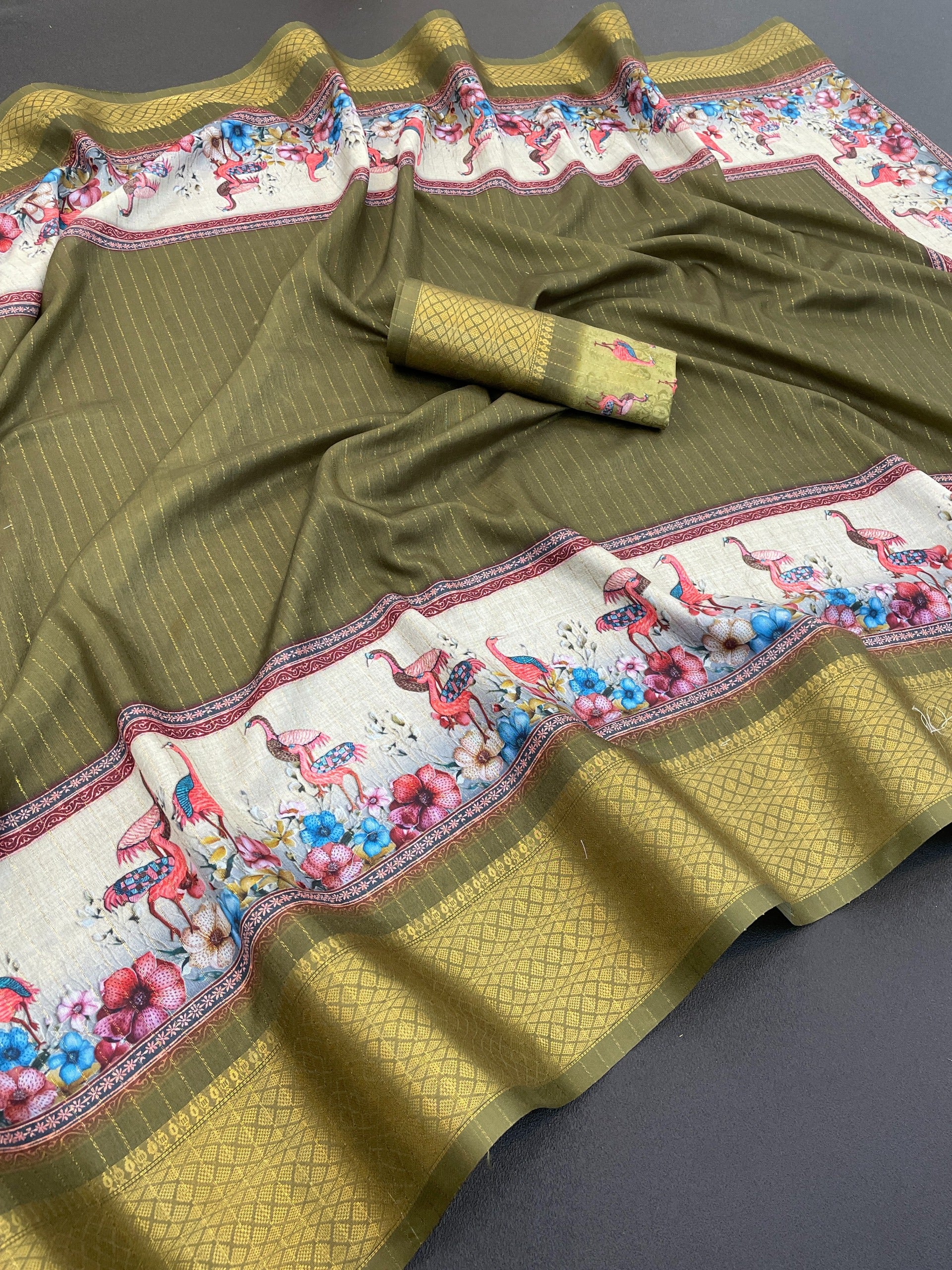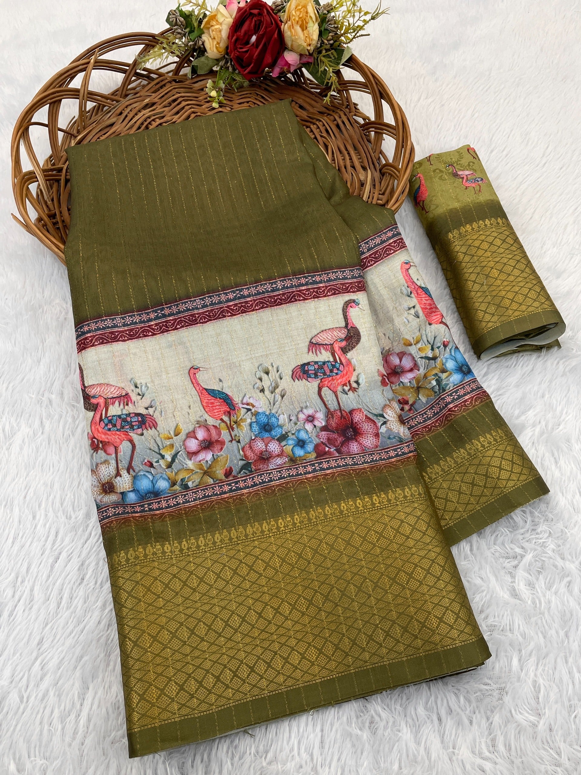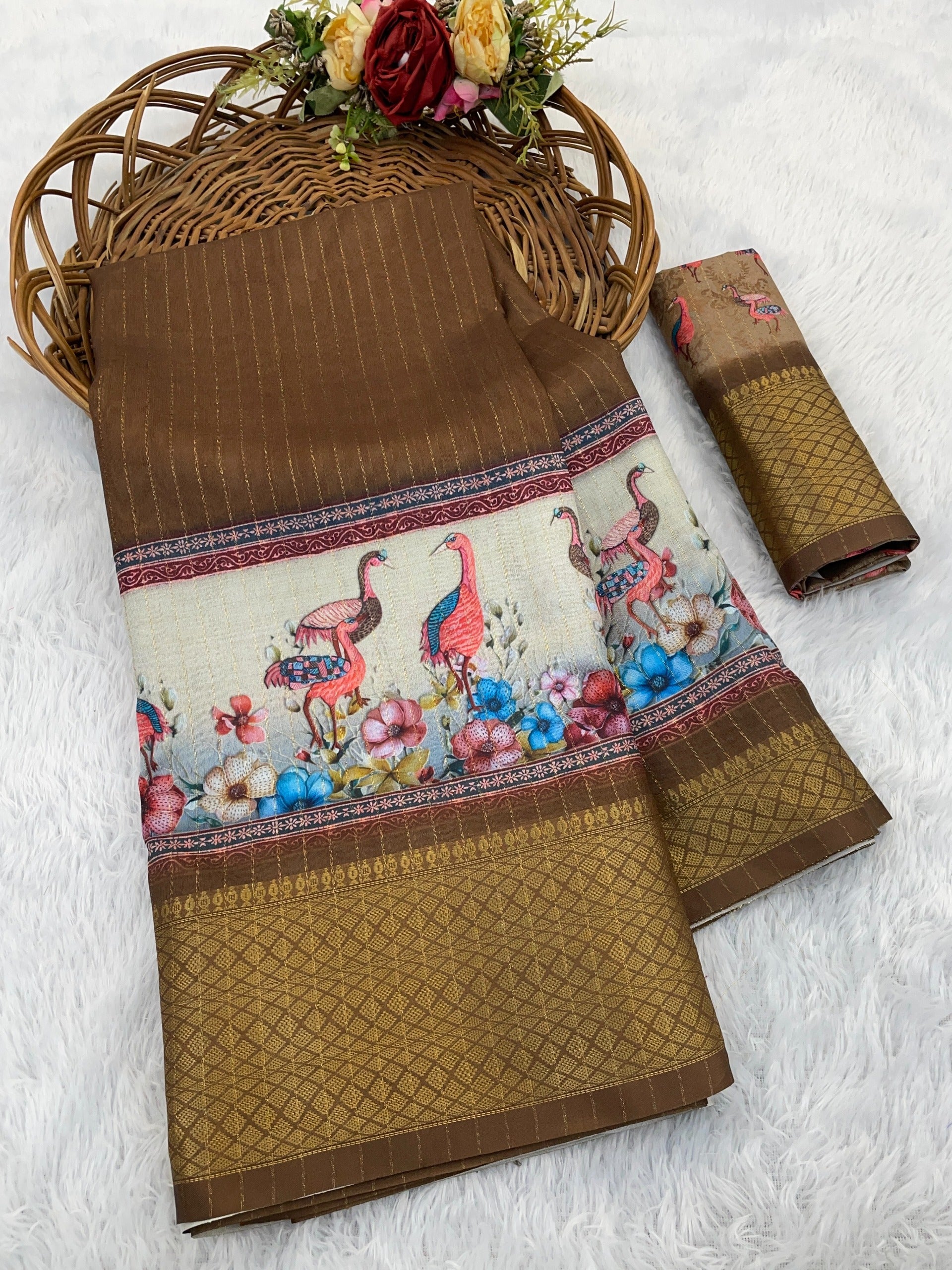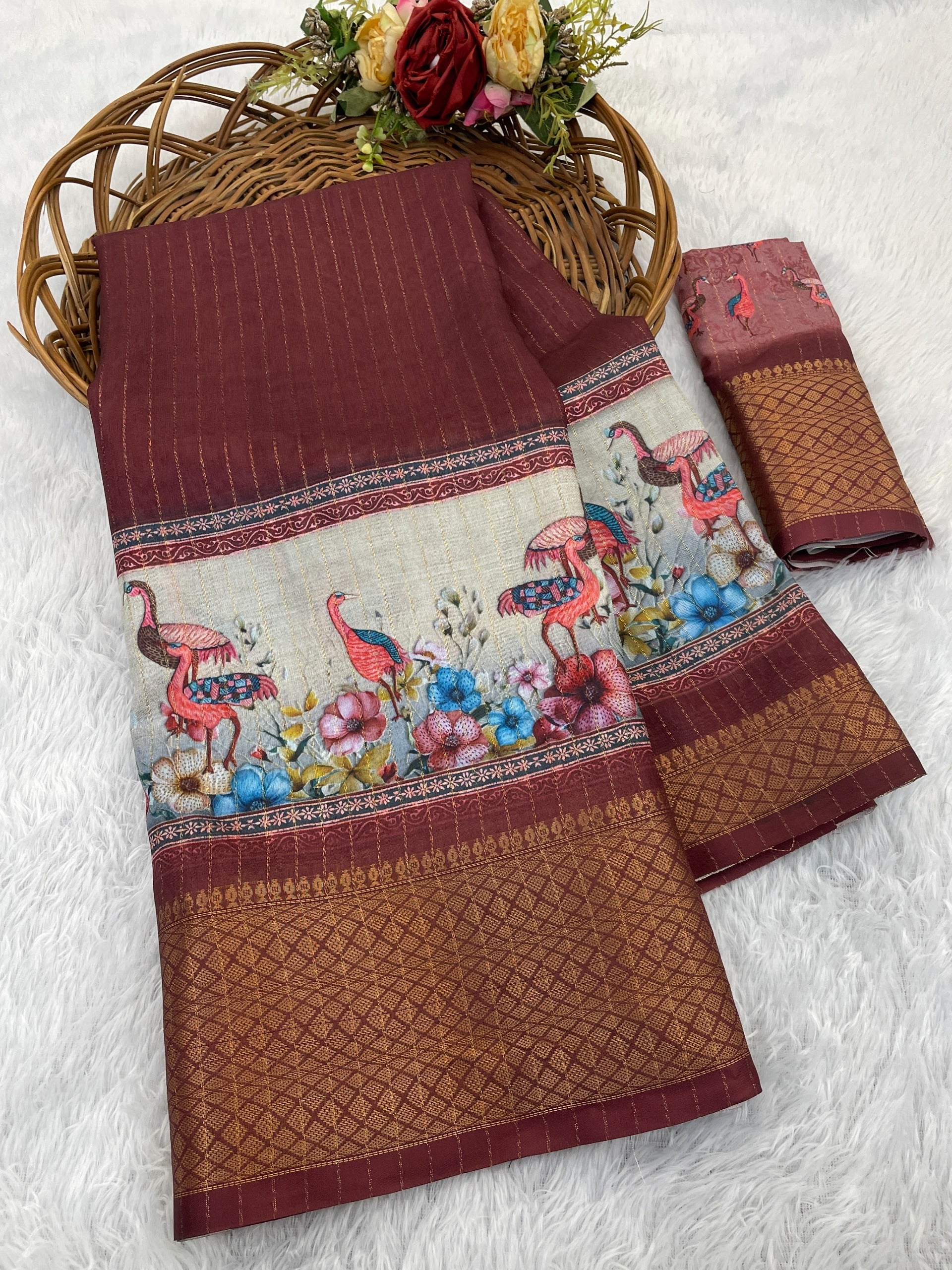 Flamingo Latest Dola Jari Digital Print New Desing Saree (8 Color )