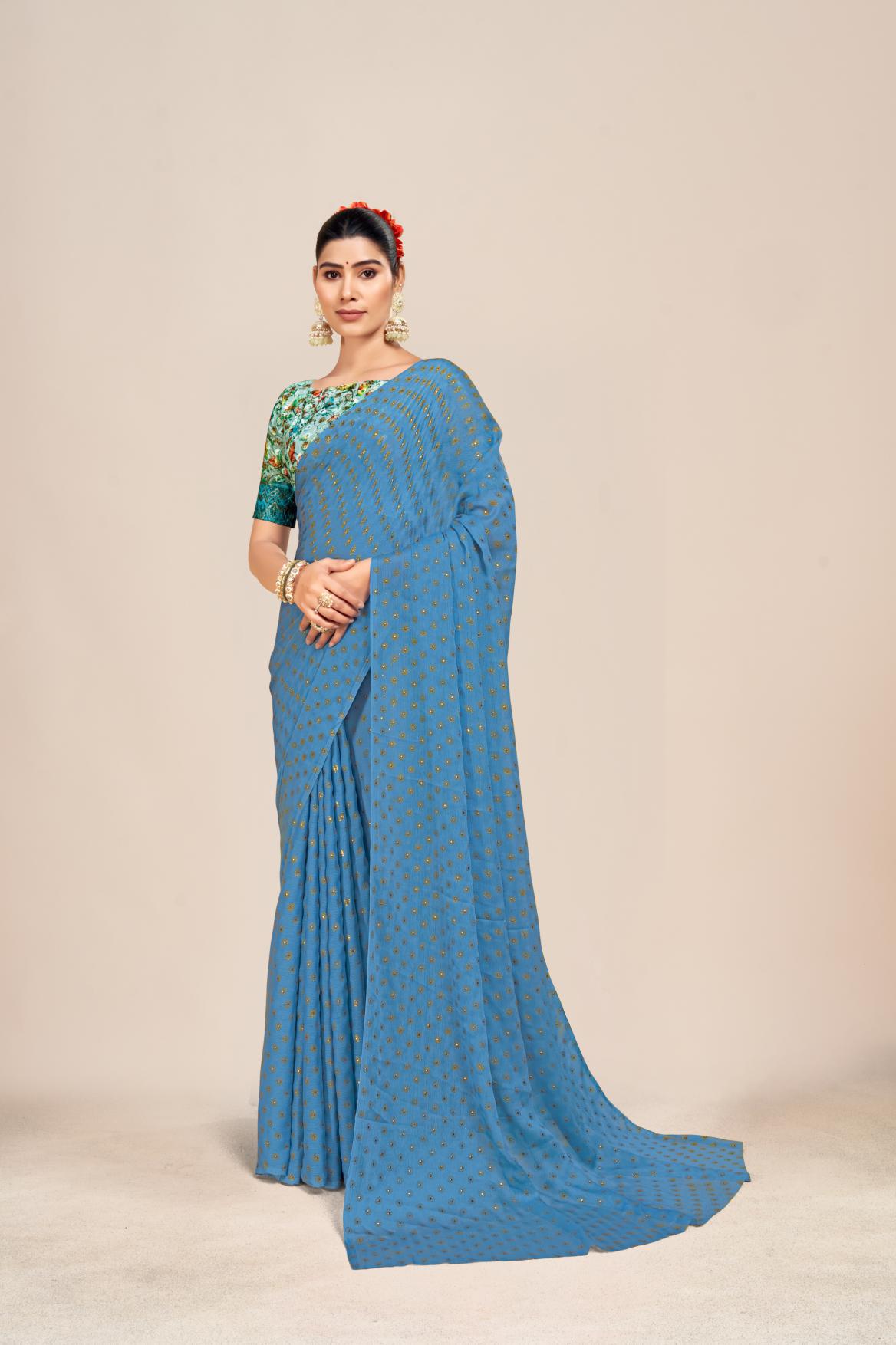Fabric: Chiffon Saree with Digital Printed Blouse and Best Selling Saree Design